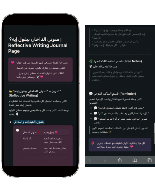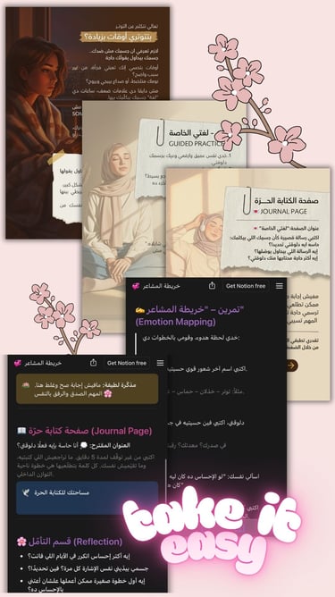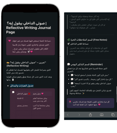 صفحات تأمل وتقييم يومي تشوفي فيها تطورك العقلي والعاطفي،